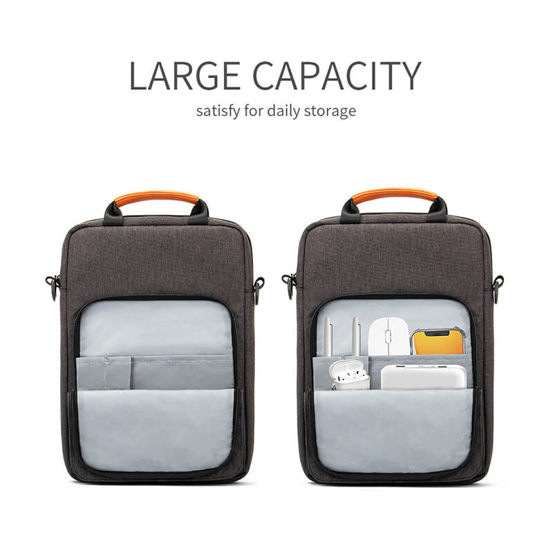 Tato praktická brašna je určena pro přenášení Vašeho Apple iPad 9.7" 2017 (5. generace) a to i se vším příslušenstvím. Tento ochranný obal vyrobený z vysoce kvalitní tkaniny, která navíc disponuje vodoodpudivou vlastností, poskytuje ochranu Vašeho notebooku proti nárazům, před běžnými známkami používání a především před drobnými oděrkami, prachem, kapkami vody či jinými nečistotami. Pouzdro je vybaveno několika kapsami s měkkým polstrováním. Největší kapsa slouží pro uložení Vašeho zařízení, zatímco o něco menší kapsy slouží pro uložení různých drobností, příslušenství k Vašemu zařízení nebo osobních věcí. Jedná se o velice kvalitní a zároveň praktický prostředek, který Vám umožní jednoduše přenášet Vaše zařízení i s veškerým příslušenstvím a zároveň poskytuje patřičné ochranné vlastnosti.