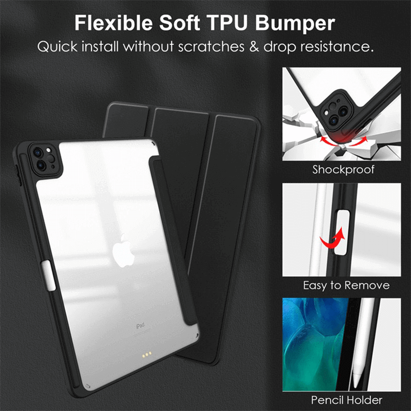 2v1 Smart flip cover+zadný silikónový ochranný obal s držiakom na pero pre Apple iPad Pro 13" 2024 (7.generace) - čierny | Student-eShop
