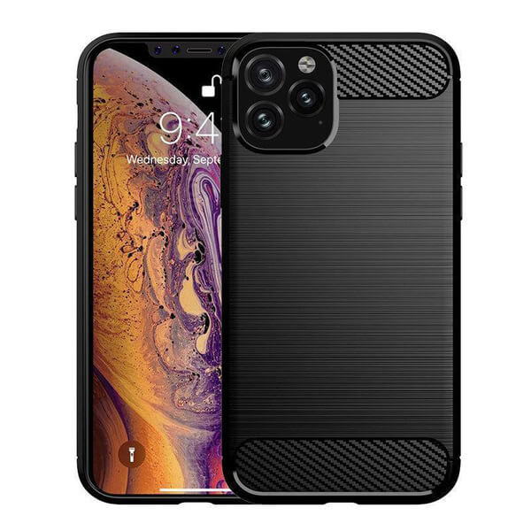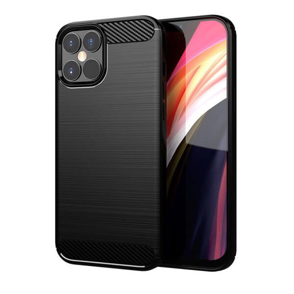 Ochranný silikónový obal karbón pre Apple iPhone 12 Pro Max - čierny