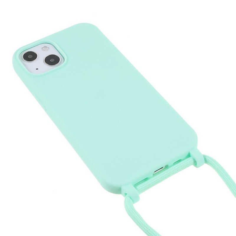 Gumový ochranný kryt so šnúrkou na krk pre Apple iPhone 13 Pro - svetlo zelený
