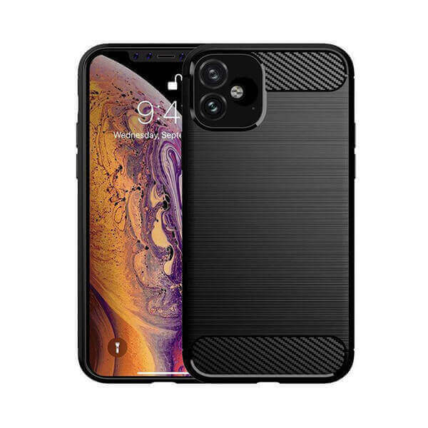 Ochranný silikónový obal karbón pre Apple iPhone 13 Pro - čierny