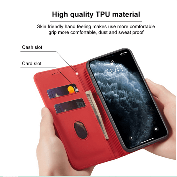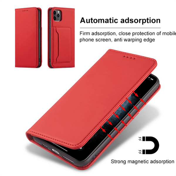 Magnetické flipové puzdro s priestorom na karty pre Apple iPhone 13 - červené