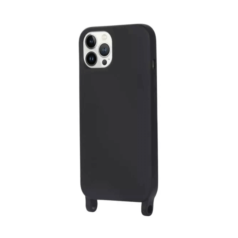Gumový ochranný kryt so šnúrkou na krk pre Apple iPhone 14 - čierny