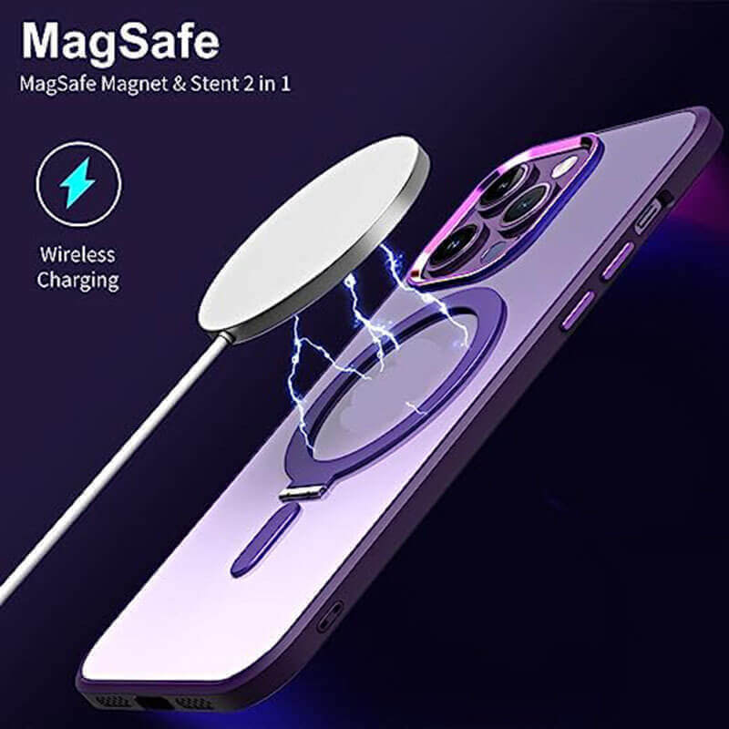 Plastový obal MagSafe se stojánkem pre Apple iPhone 15 Pro - tmavo modrý
