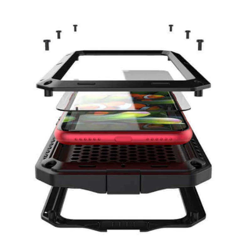 Kryt je vyroben z kvalitního odolného hliníku a v kombinaci se silikonovou postranní a zadní vstvou tvoří dokonalou voděodolnou funkční ochranu a zároveň zachovává dotykové vlastnosti displeje. Samozřejmostí je i přístupnost všech tlačítek a konektrorů. Jedná se o kompletní a funkční ochranu Vašeho telefonu a to především před vlhkostí, deštěm, stříkající vodě, potem, ale i prachem, pískem ale i různými jinými nečistotami v extrémnějších podmínkách například při cestování. Ochranný obal dokonce může v některých případech zmírnit následky poškození Vašeho telefonu při pádu nebo při jiných podobných nehodách.