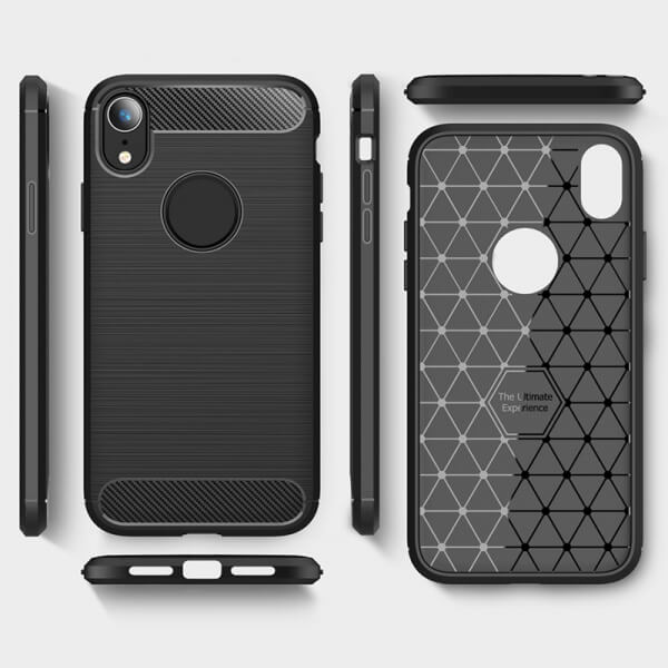 Ochranný silikónový obal karbón pre Apple iPhone XR - čierny