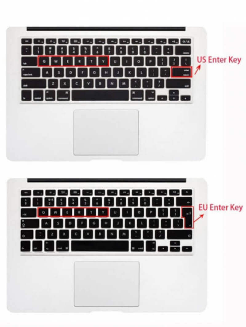 - US verzia - americká: táto verzia má rovnú kláves "Enter" v tvare obdĺžnika a bude pasovať iba na MacBook dovážaný z USA. Nepasuje na MacBook z EÚ a Japonska