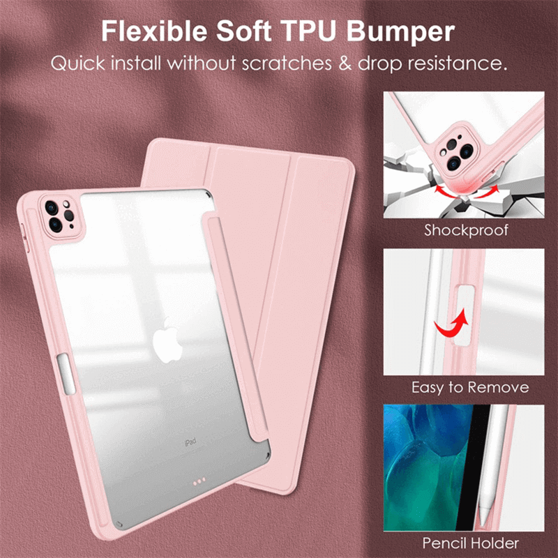 2v1 Smart flip cover+zadný silikónový ochranný obal s držiakom na pero pre Honor Pad X8 Pro - svetlo ružový
