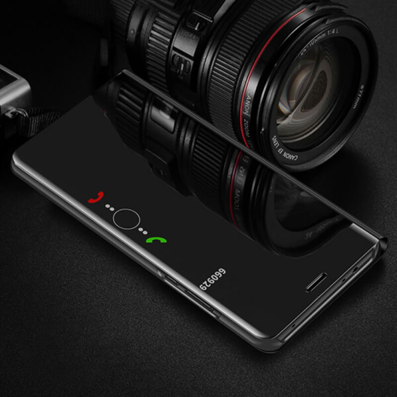Zrkadlový plastový flip obal pre Huawei P30 - čierny