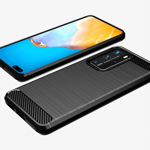 Ochranný silikónový obal karbón pre Huawei P40 Pro - čierny