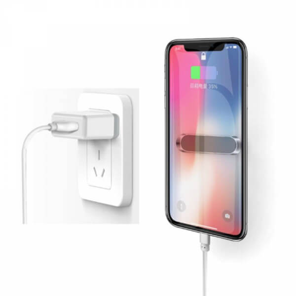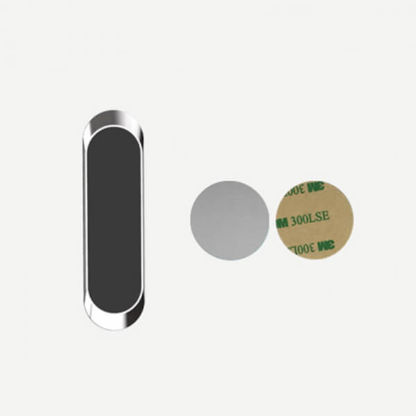 K držiaku sú dodávané dve špeciálne lepiace magnetické podložky, ktoré sa upevnia na telefón a pomocou ktorej potom telefón na držiaku drží.