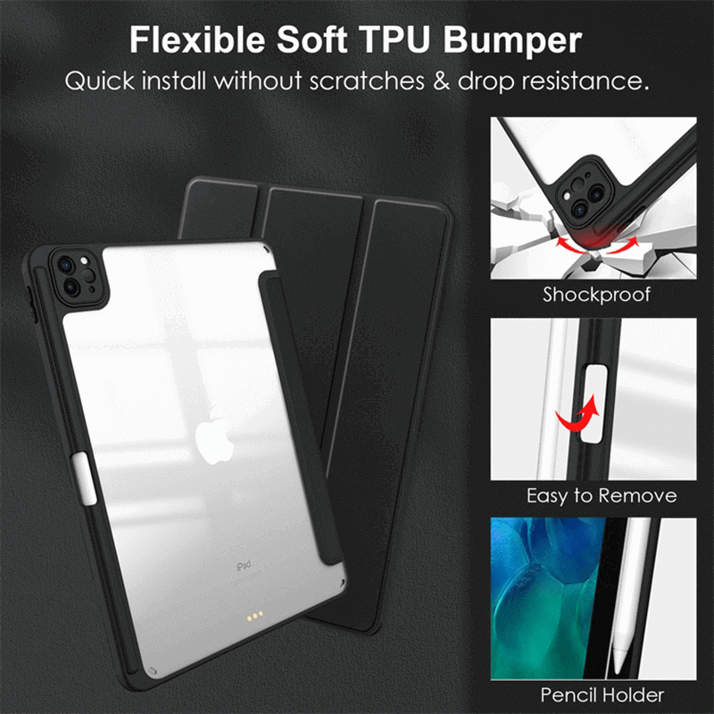2v1 Smart flip cover+zadný silikónový ochranný obal s držiakom na pero pre Xiaomi Pad 5 Pro - čierny